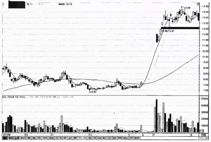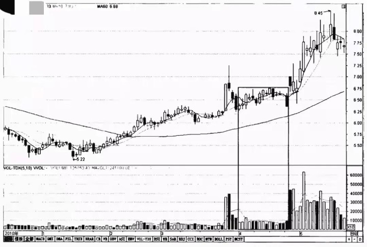 股价经历长期横盘,成交量萎缩到“地量”水平,就像一潭死水。突然某一天开始,成交量连续几天温和放大,比之前放大30%-50%,但股价涨幅并不大。