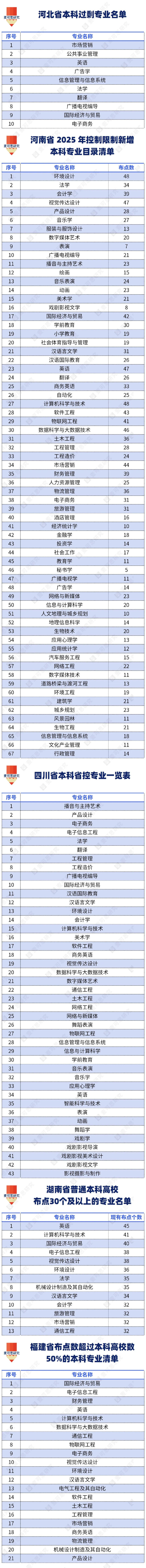 多省控制增设专业名单汇总