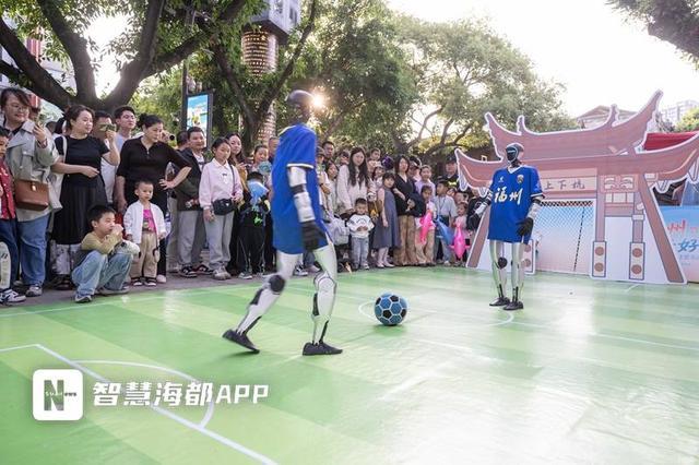 当下,“闽超”热潮燃动全城。现场特设数字文旅体验区,酷炫AI机器人随着音乐节奏精准传球、射门,灵动动作引爆全场;数字足球体验区里,游客与虚拟守门员展开“人机大战”,热闹不已。广场变身“闽超”观赛第二现场,超大屏幕实时直播赛事,氛围感拉满,让球迷沉浸式感受足球激情。